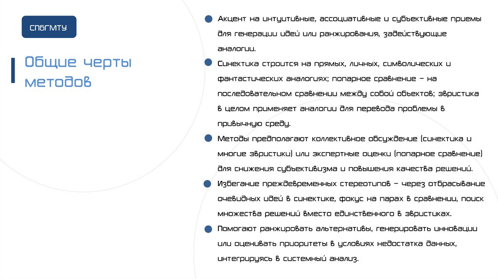 Акцент на интуитивные, ассоциативные и субъективные приемыСПбГМТУ