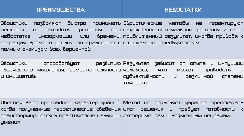 Эвристики позволяют быстро принимать Эвристические методы не гарантируют