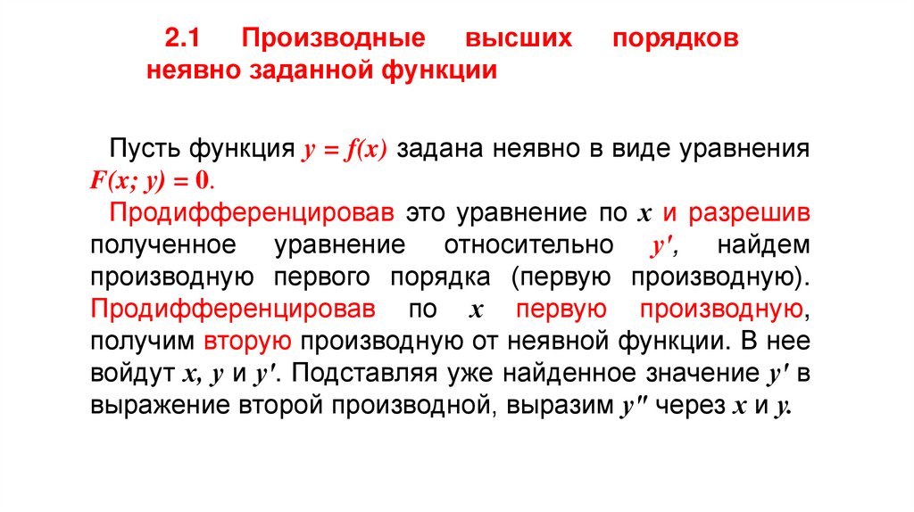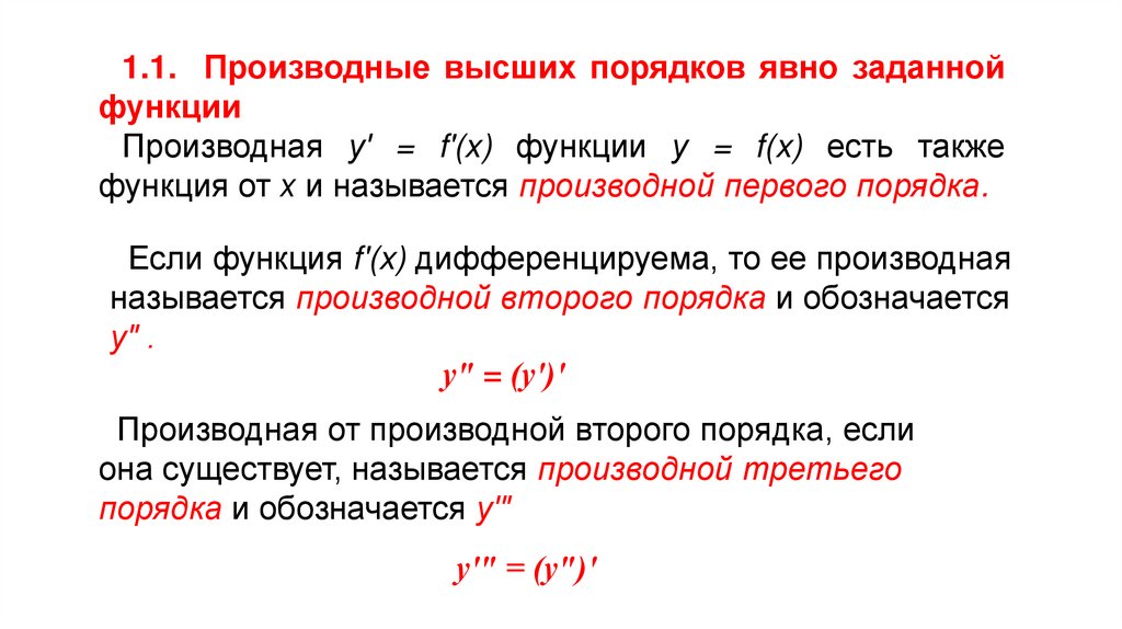 1.1. Производные высших порядков явно заданнойфункции