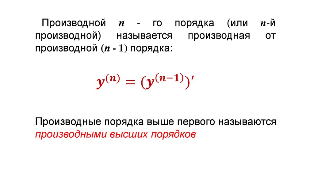 Производной п - го порядка (или n-йпроизводной) называется производная от