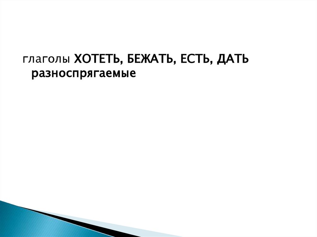 глаголы ХОТЕТЬ, БЕЖАТЬ, ЕСТЬ, ДАТЬразноспрягаемые