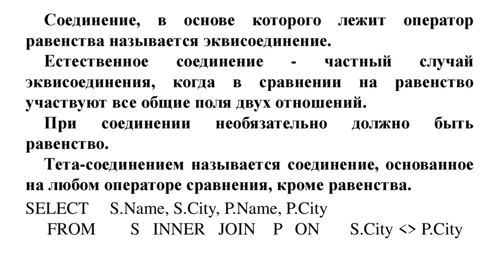 Соединение, в основе которого лежит операторравенства называется эквисоединение.