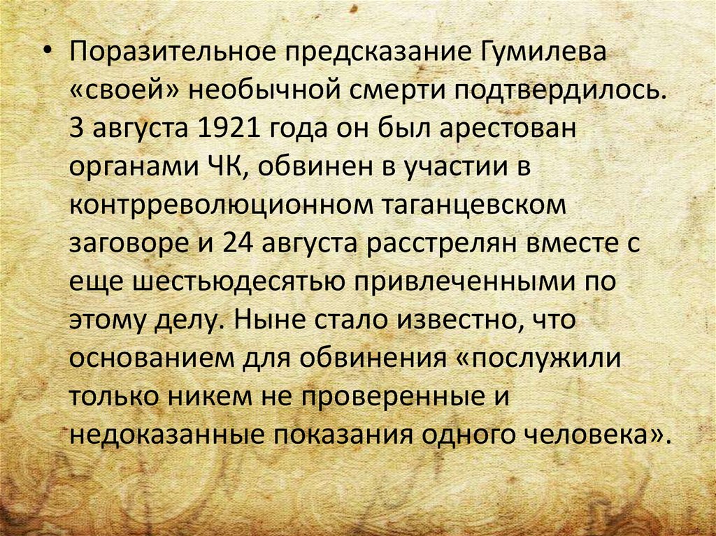 • Поразительное предсказание Гумилева«своей» необычной смерти подтвердилось.