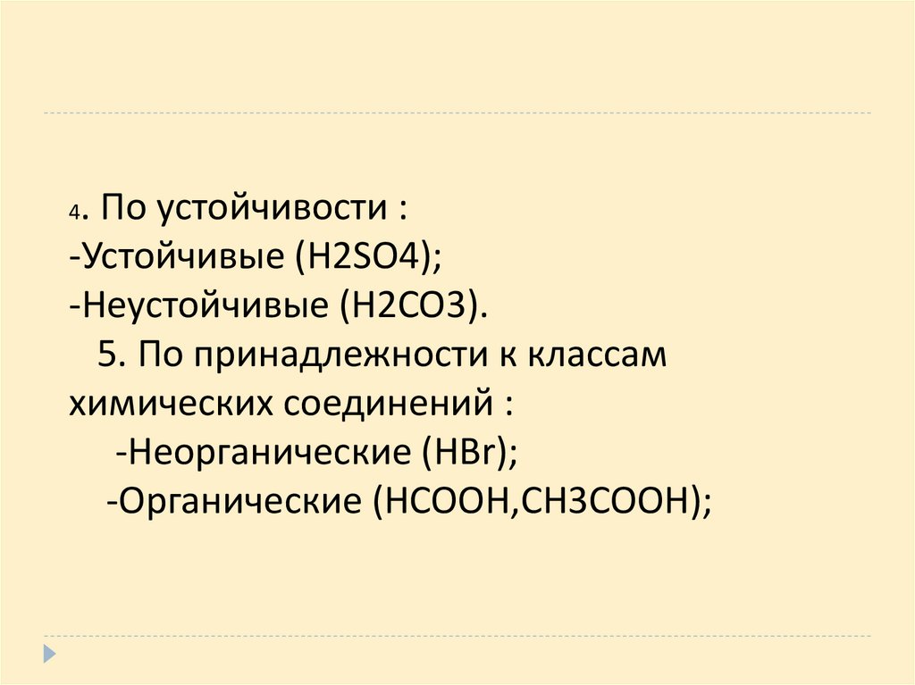 -бескислородные(HCl, H2S);-кислородосодержащие (HNO3,H2SO4).