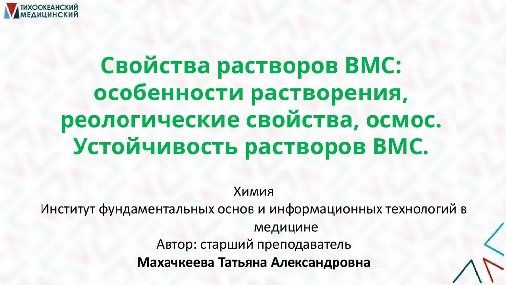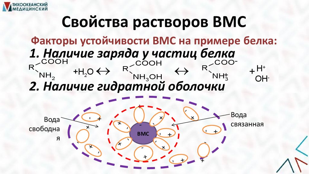Свойства растворов ВМСФакторы устойчивости ВМС на примере белка: