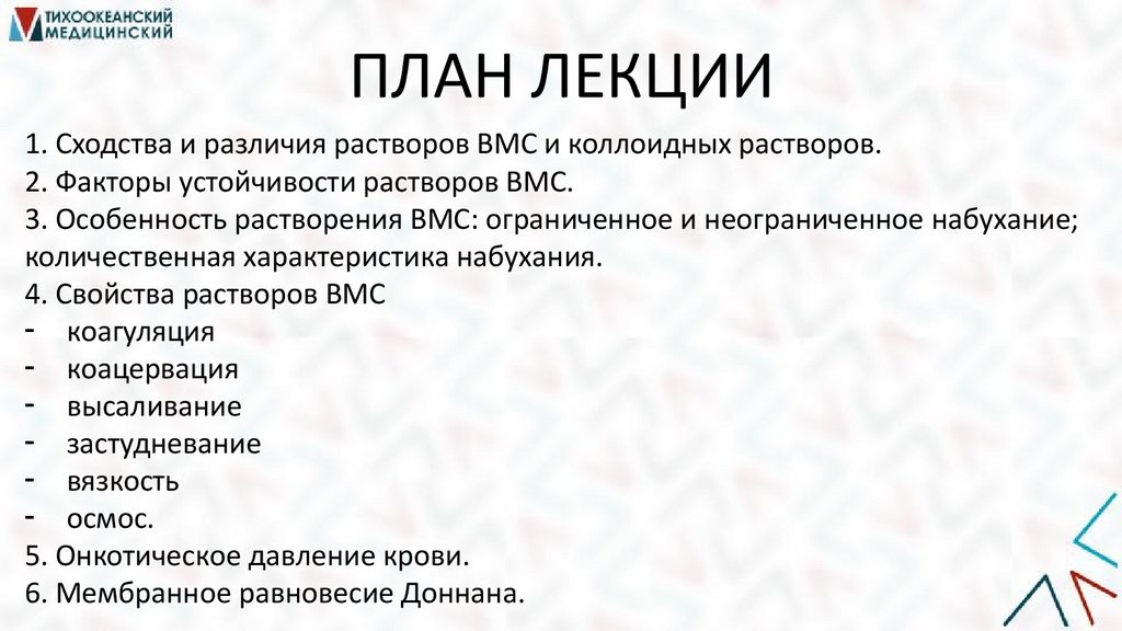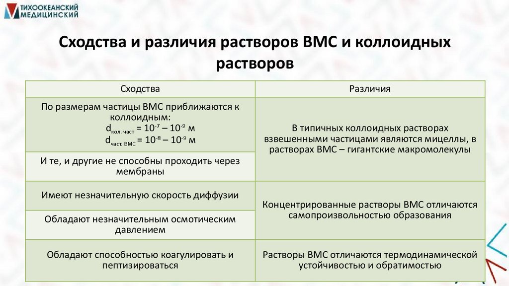 ПЛАН ЛЕКЦИИ1. Сходства и различия растворов ВМС и коллоидных растворов.