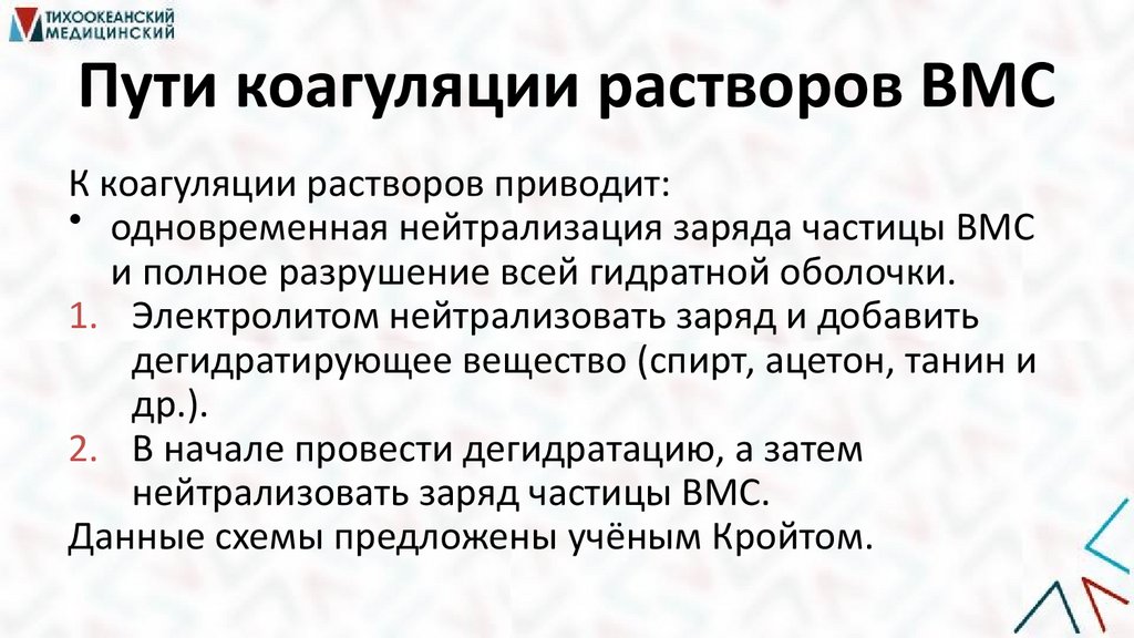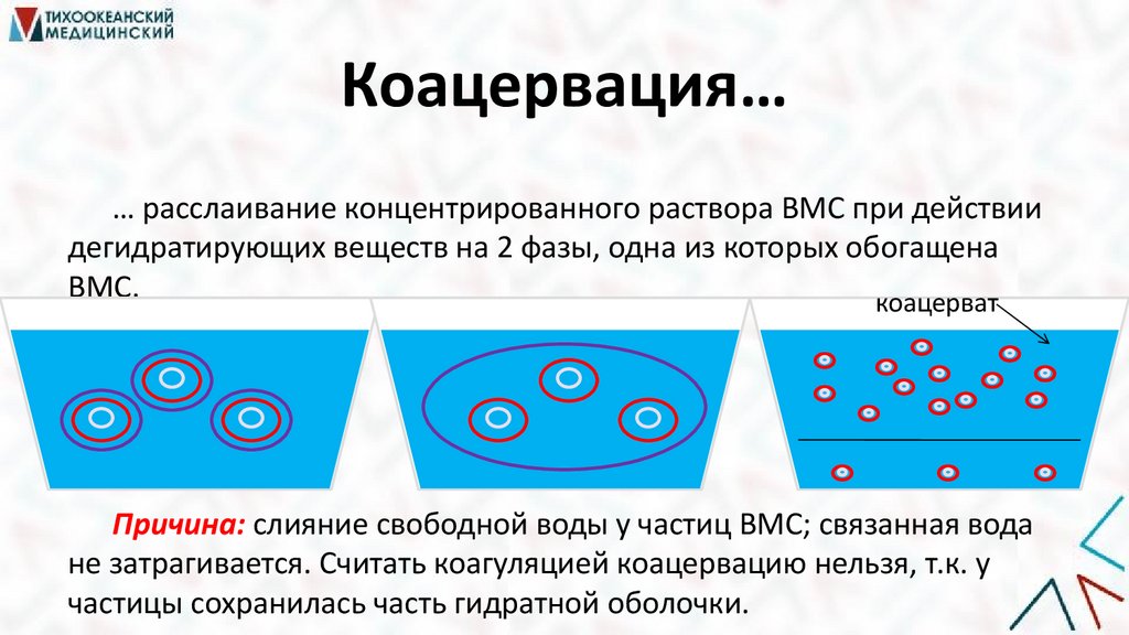 коацервацию с сохранением у частиц ВМС части гидратной оболочки, что препятствует коагуляции