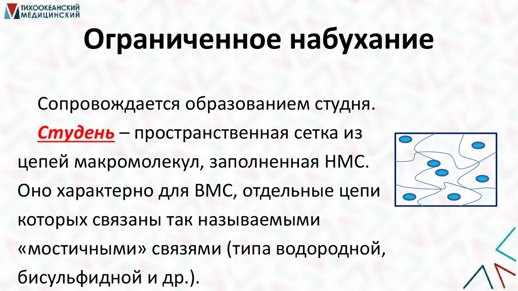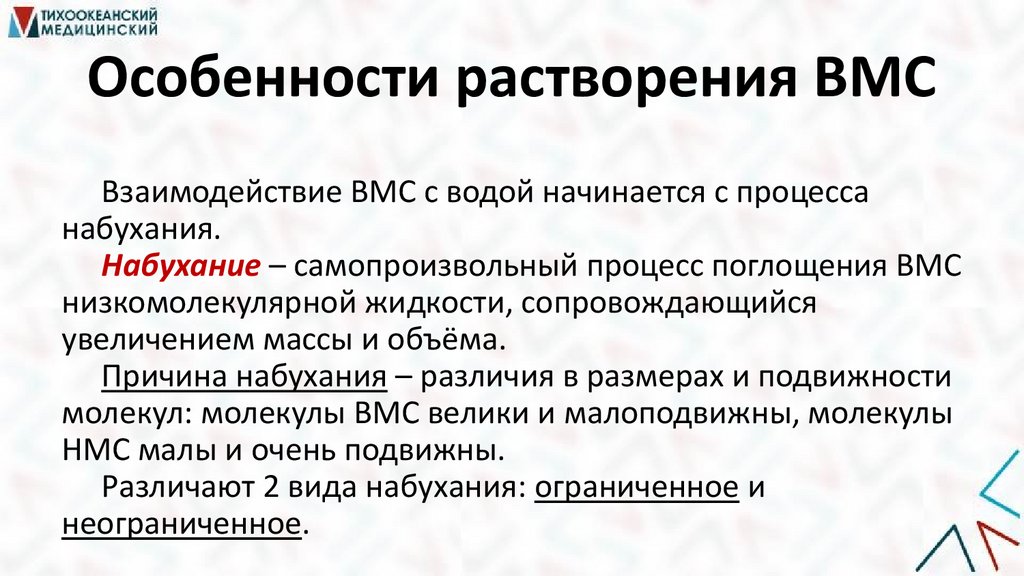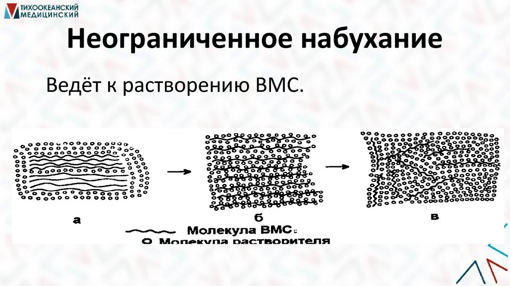 3. Особенность растворения ВМС: ограниченное и неограниченное набухание;