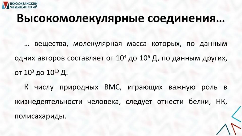 Высокомолекулярные соединения…… вещества, молекулярная масса которых, по данным