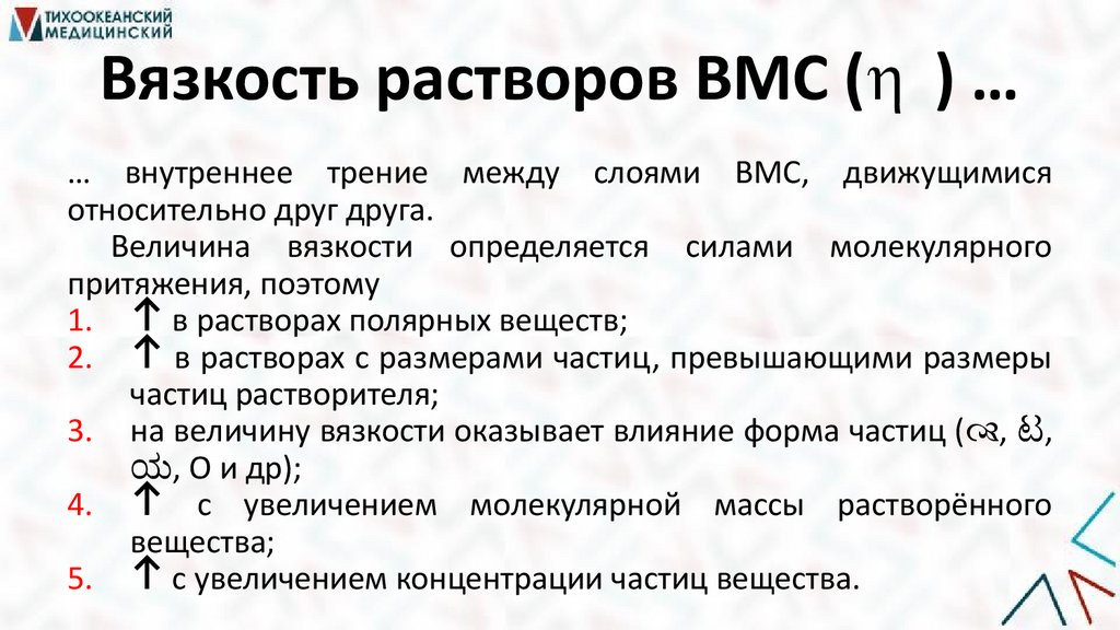 вязкость за счет наличия у частиц большой молекулярной массы слоев (гидратных, электрических),