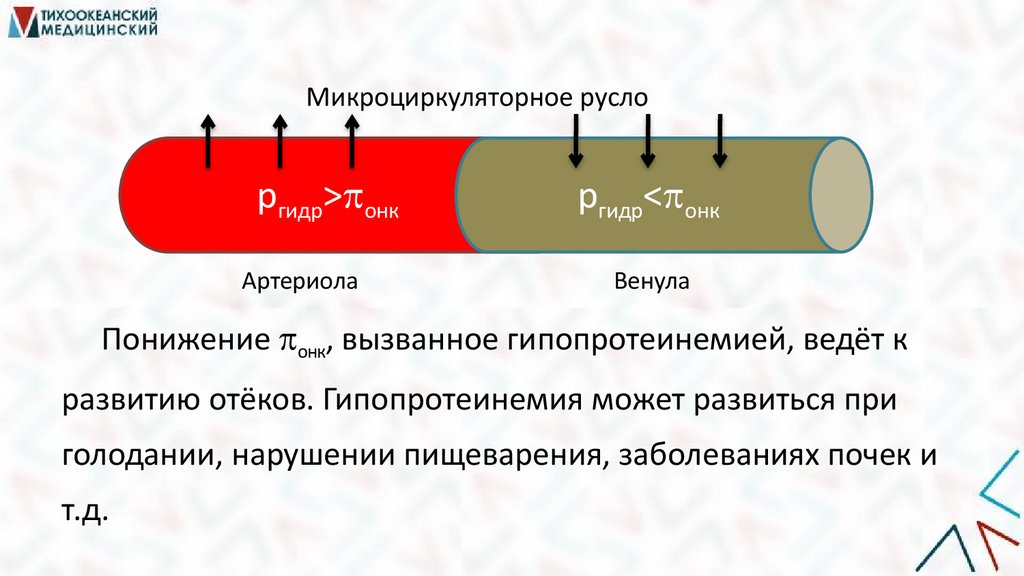 Понижение онк, вызванное гипопротеинемией, ведёт к