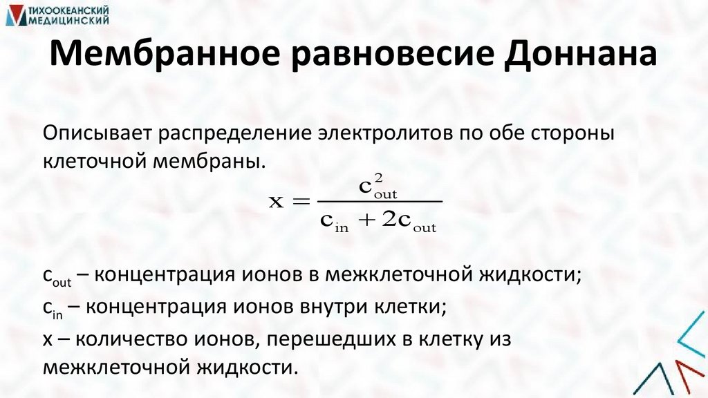 Мембранное равновесие ДоннанаОписывает распределение электролитов по обе стороны