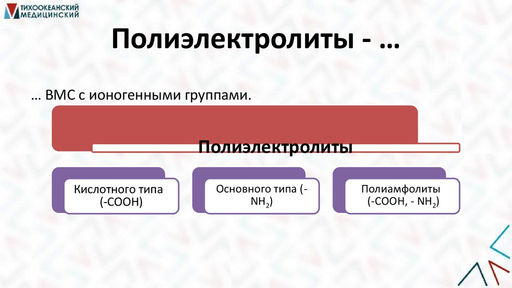 Полиэлектролиты - …… ВМС с ионогенными группами.