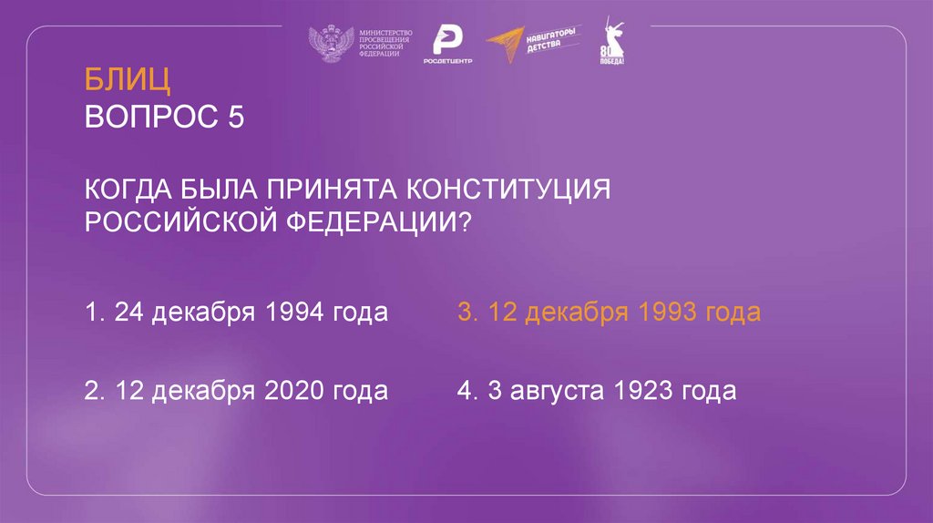 ДНЯ КОНСТИТУЦИИ В РОССИЙСКОЙ ФЕДЕРАЦИИ?