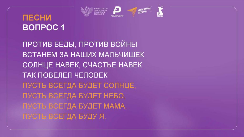 ПУСТЬ ВСЕГДА БУДЕТ СОЛНЦЕ,