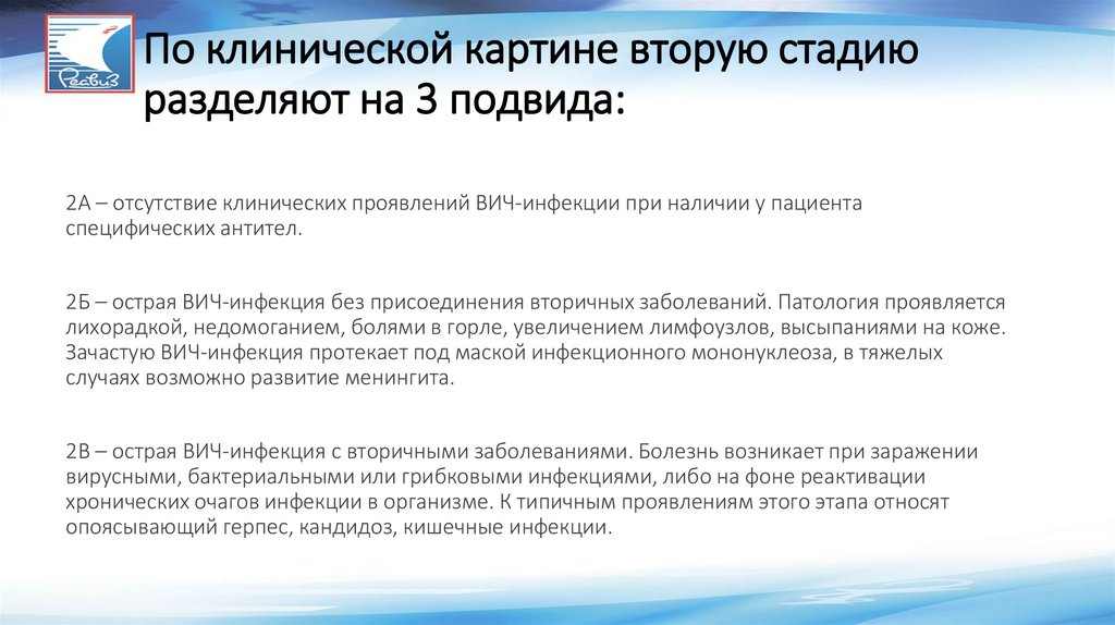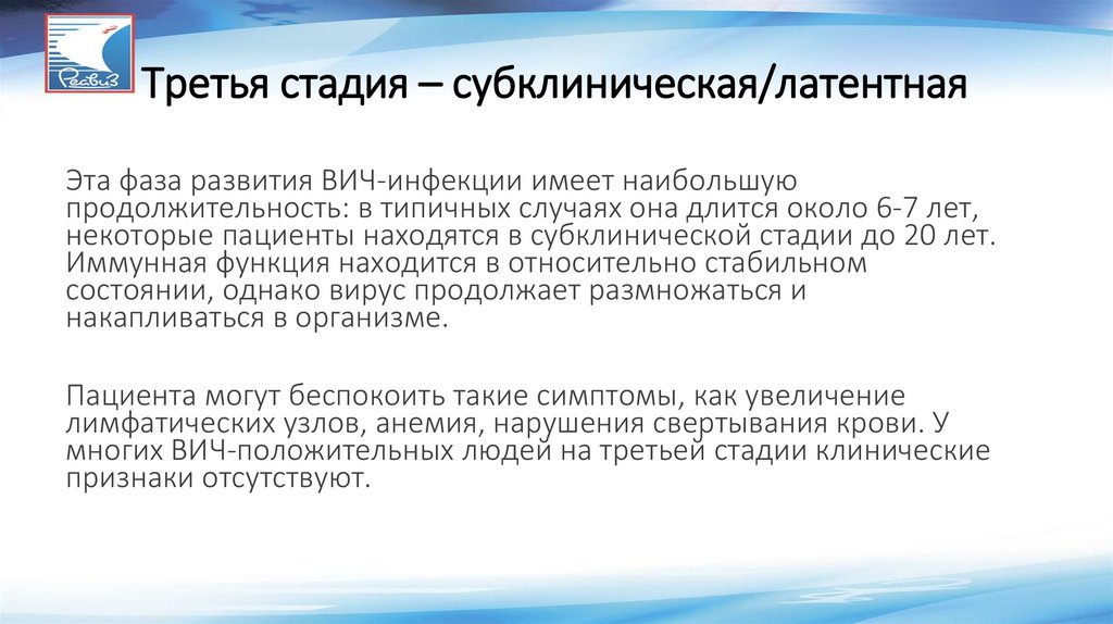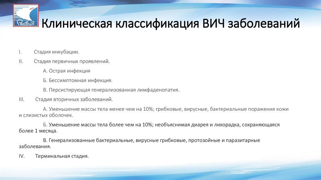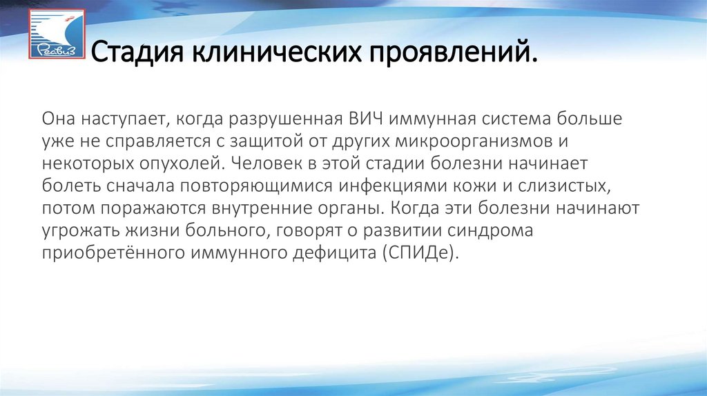 ВИЧ-инфекция - инфекционное заболевание, вызываемое вирусомиммунодефицита человека. Характеризуется прогрессирующим