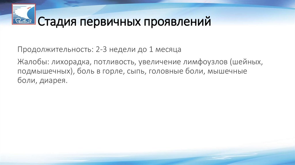 Стадия инкубацииПродолжительность: 1-2 мес., иногда до 12 месяцев