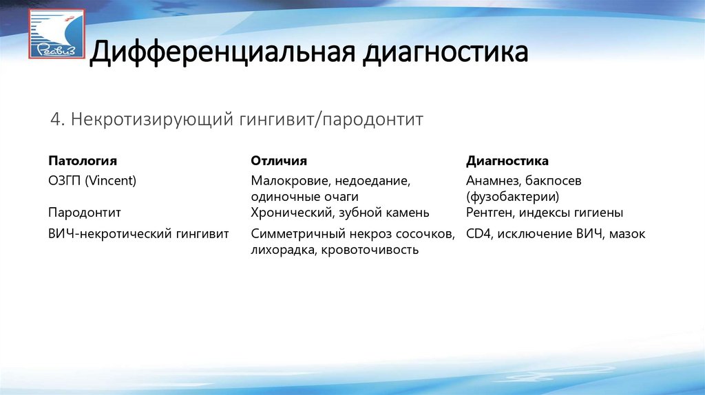 Дифференциальная диагностика4. Некротизирующий гингивит/пародонтит