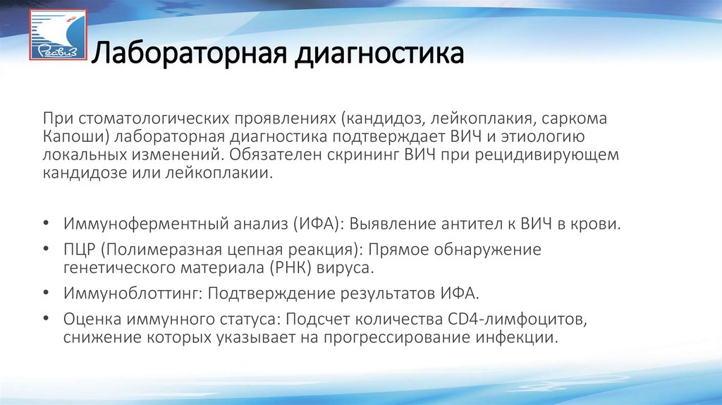 Капоши) лабораторная диагностика подтверждает ВИЧ и этиологию