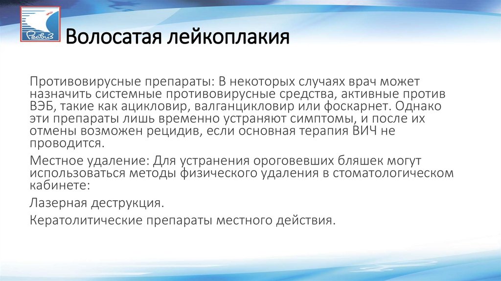 Волосатая лейкоплакияПротивовирусные препараты: В некоторых случаях врач может