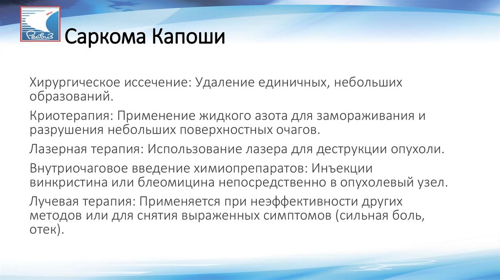 Саркома КапошиХирургическое иссечение: Удаление единичных, небольших