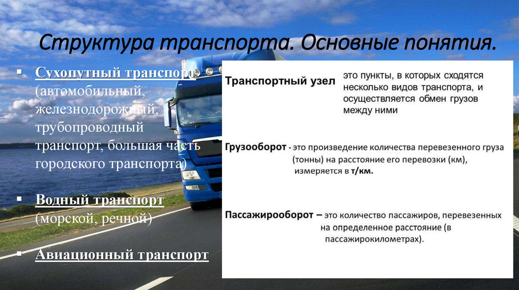 Структура транспорта. Основные понятия.Сухопутный транспорт