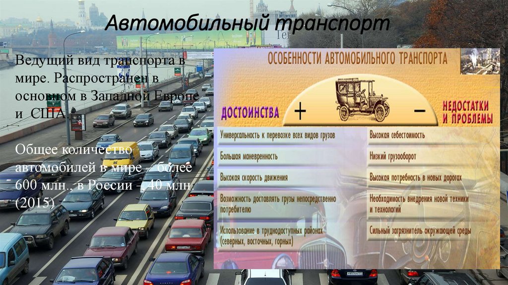 Автомобильный транспортВедущий вид транспорта в