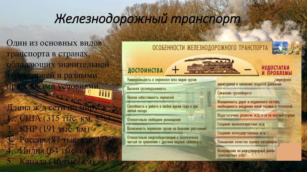 Железнодорожный транспортОдин из основных видов