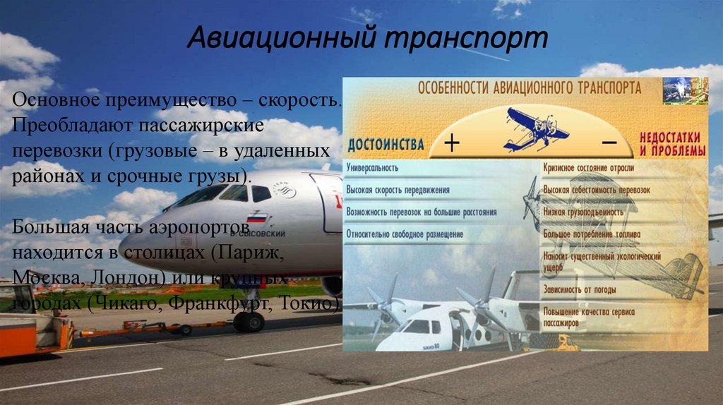 Авиационный транспортОсновное преимущество – скорость.