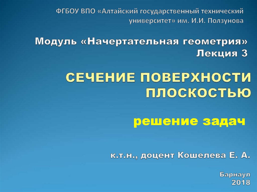 поверхности с плоскостью [Электронный ресурс]: Методические