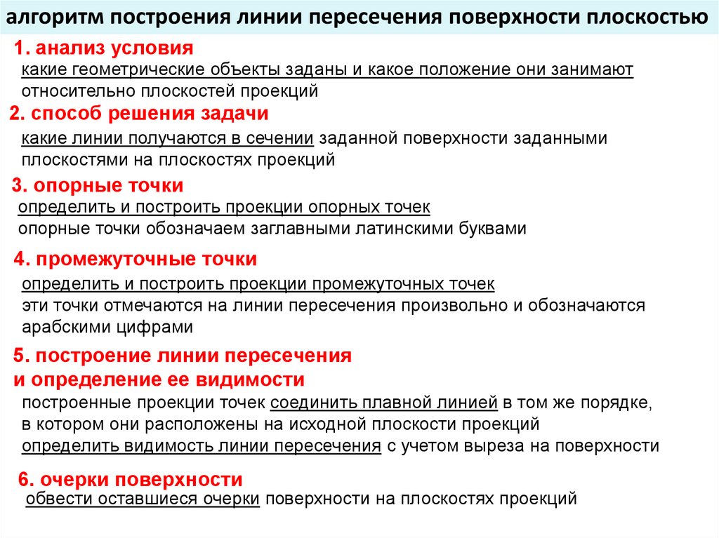 алгоритм построения линии пересечения поверхности плоскостью1. анализ условия
