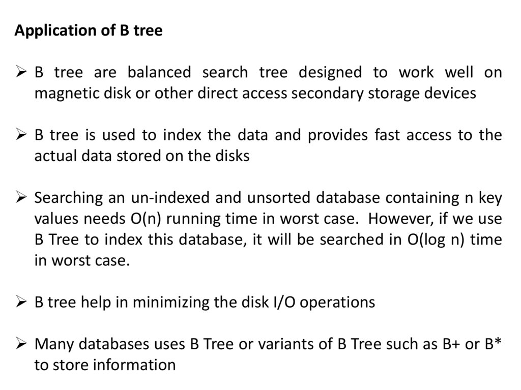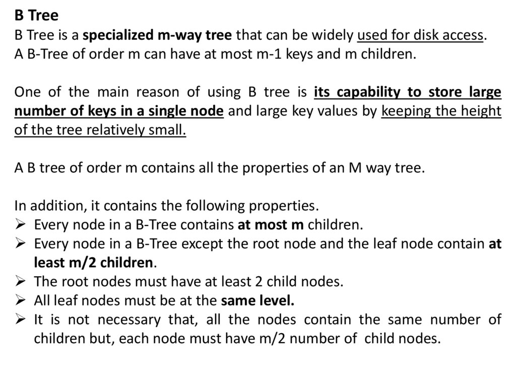 B TreeB Tree is a specialized m-way tree that can be widely used for disk access.