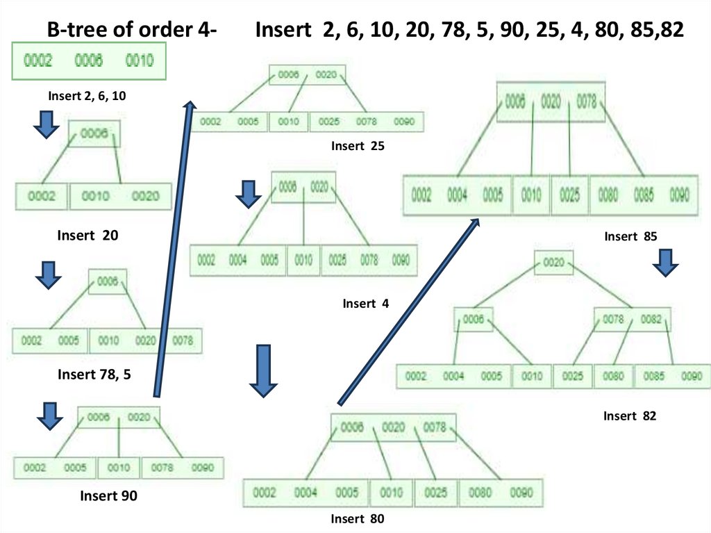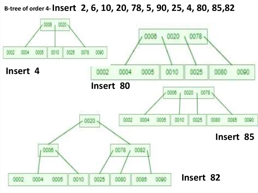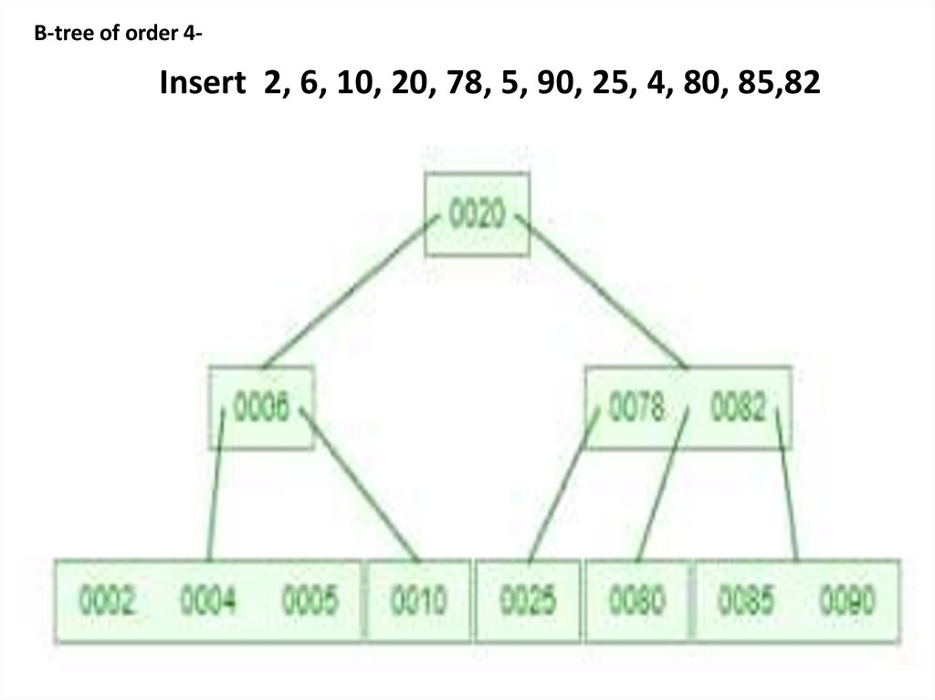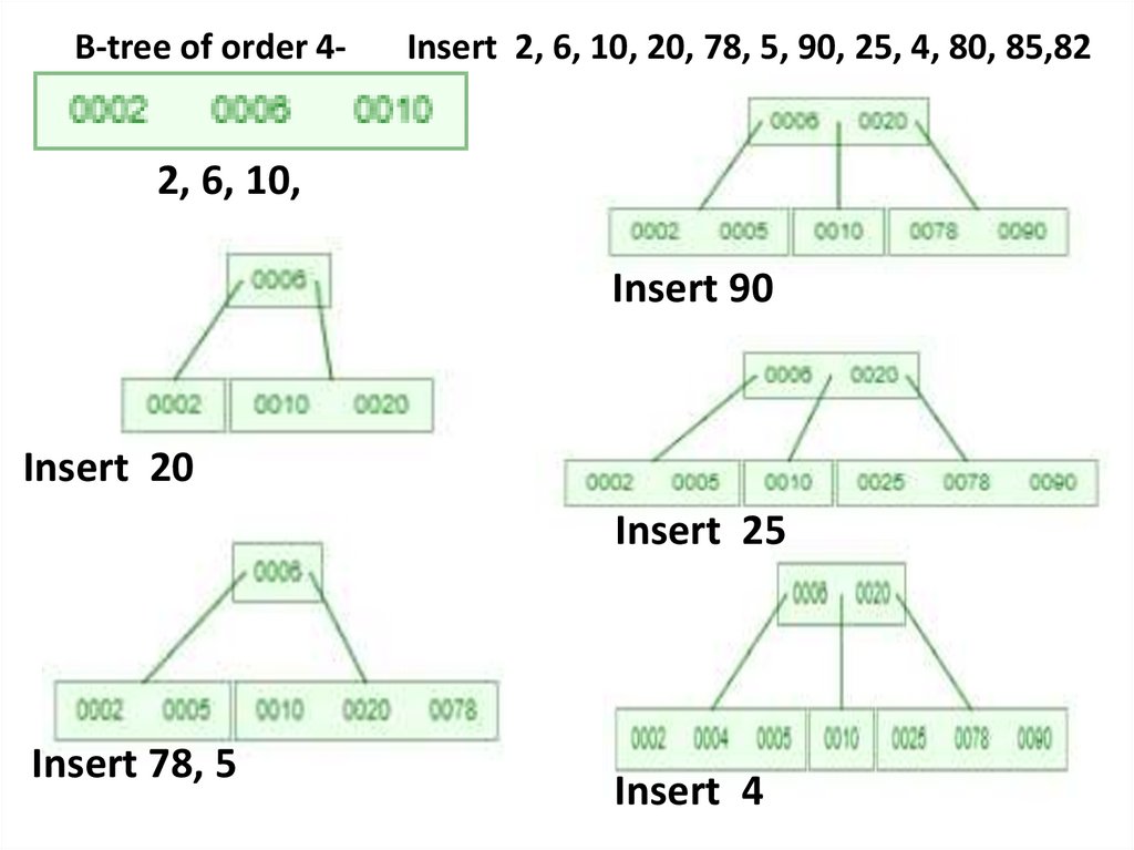 B-tree of order 4Insert 2, 6, 10, 20, 78, 5, 90, 25, 4, 80, 85,828.