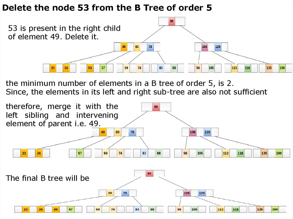 Delete the node 53 from the B Tree of order 553 is present in the right child