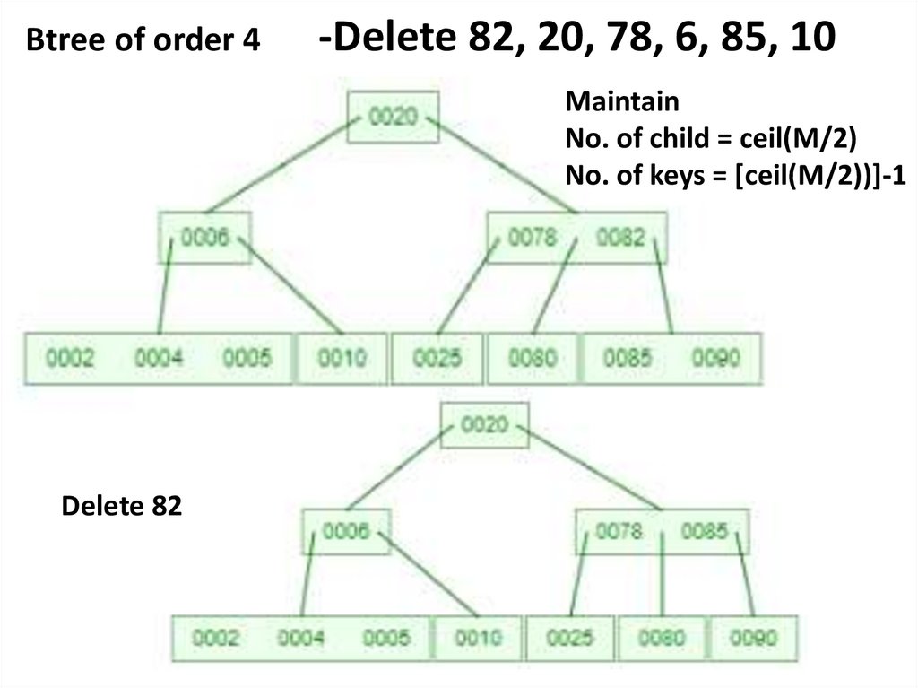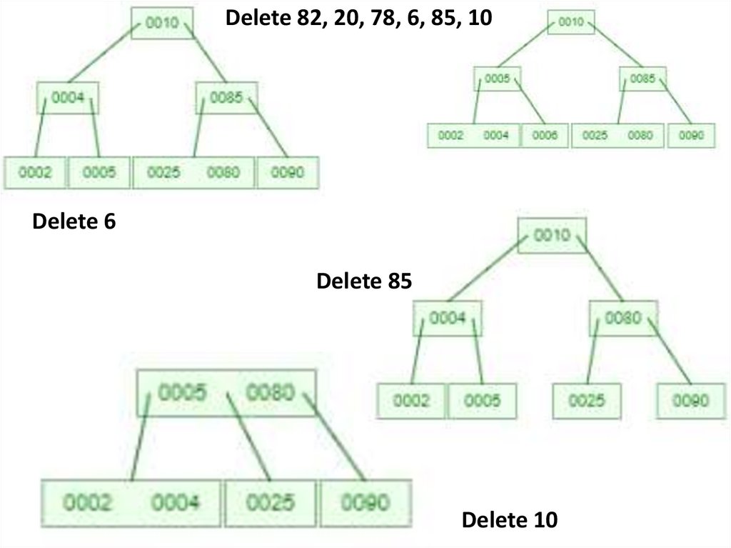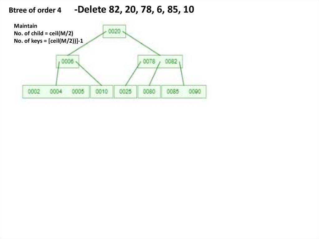 Btree of order 4-Delete 82, 20, 78, 6, 85, 10