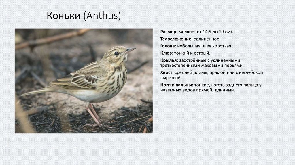 Коньки (Anthus)Размер: мелкие (от 14,5 до 19 см).