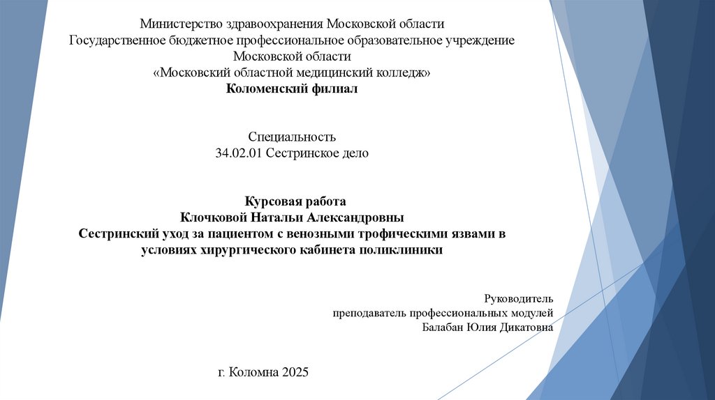1. Министерство здравоохранения Московской области Государственное бюджетное профессиональное образовательное учреждение