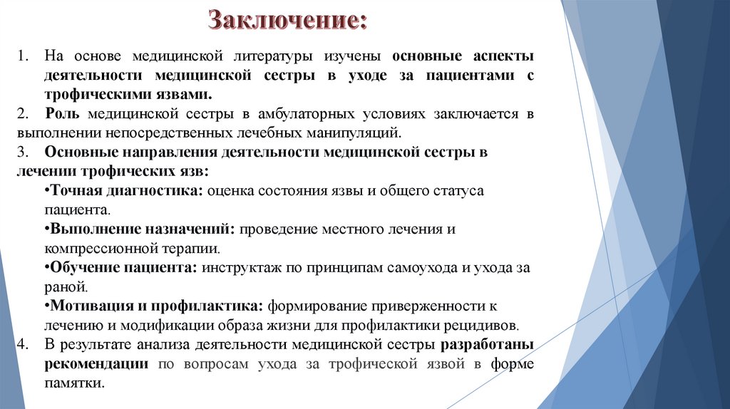 Изучение основных аспектов деятельности медицинскойсестры в уходе за пациентом с венозными трофическими