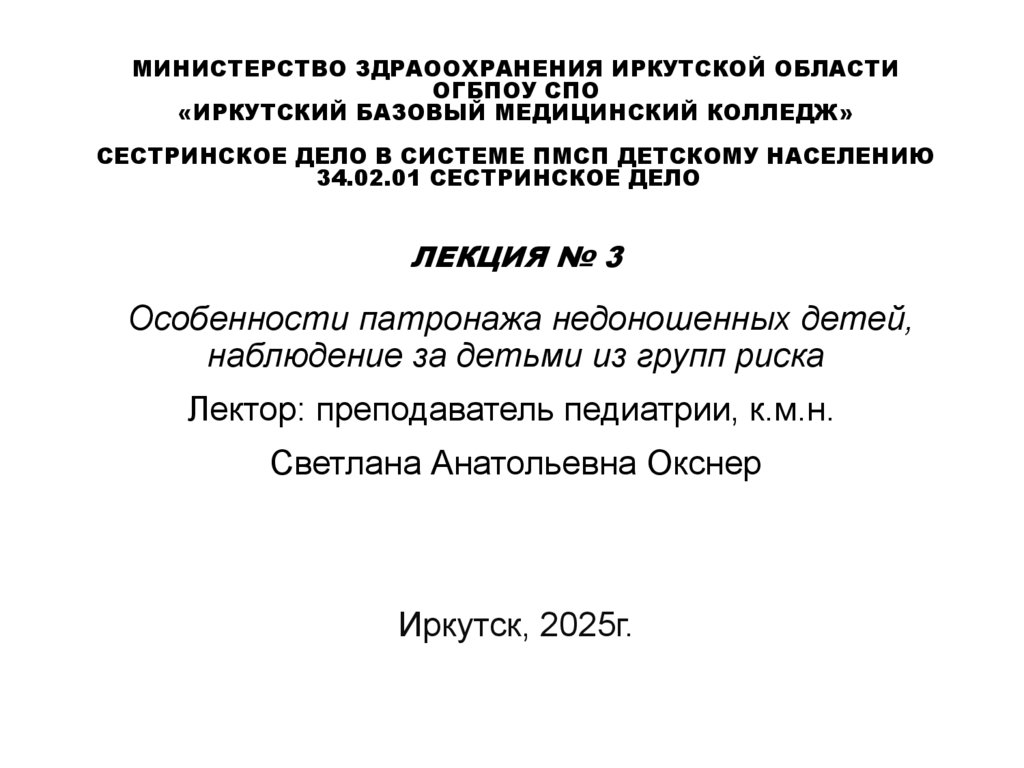 Лектор: преподаватель педиатрии, к.м.н.