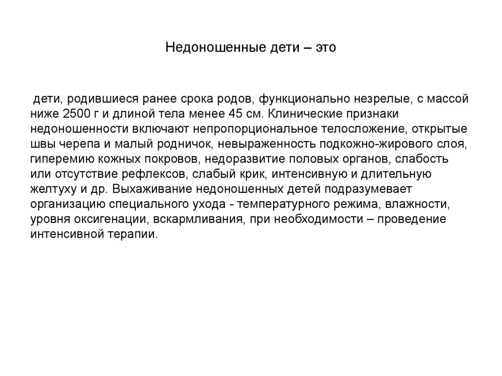 Недоношенные дети – этодети, родившиеся ранее срока родов, функционально незрелые, с массой