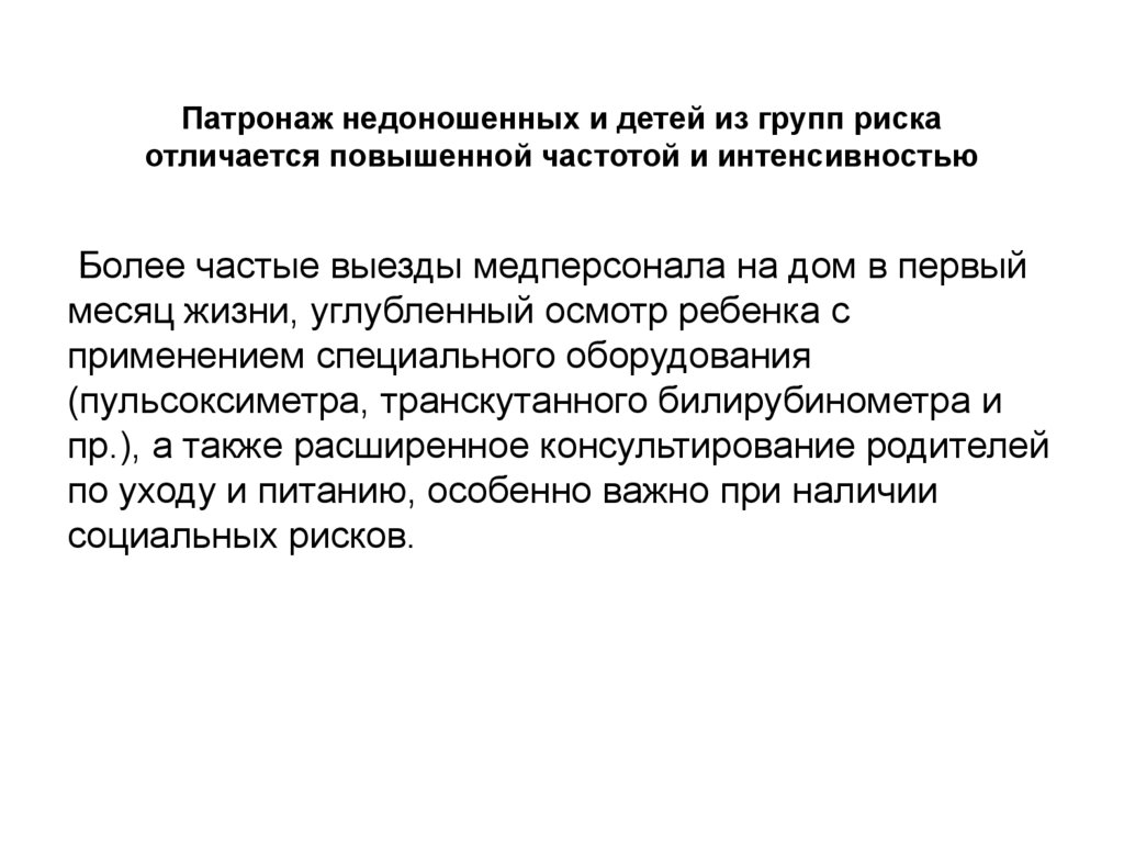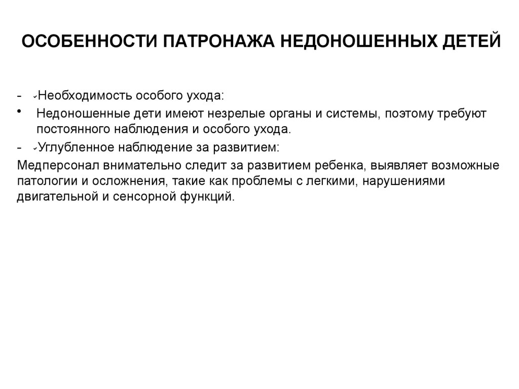 Особенности патронажа недоношенных детей,
