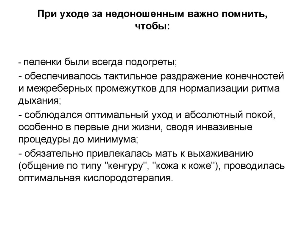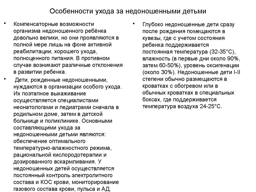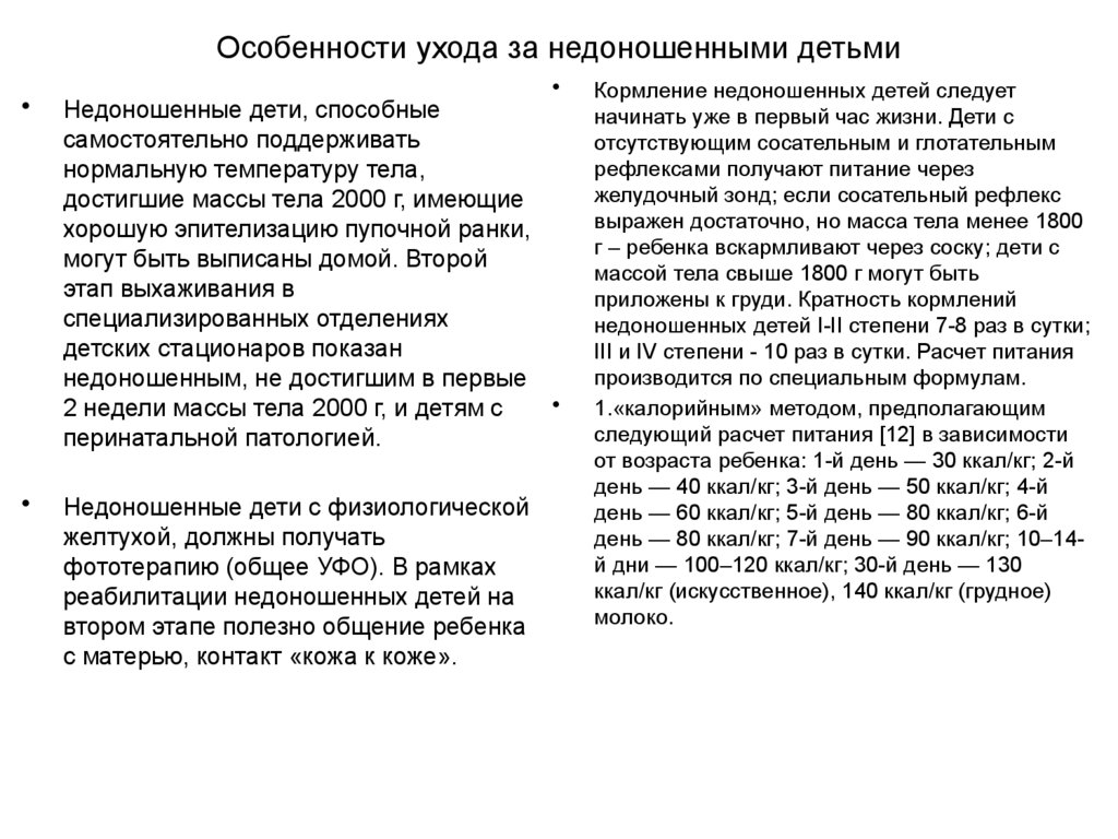 желтуху и др. Выхаживание недоношенных детей подразумевает