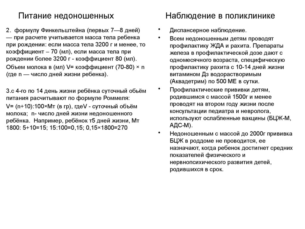 Питание недоношенныхНаблюдение в поликлинике