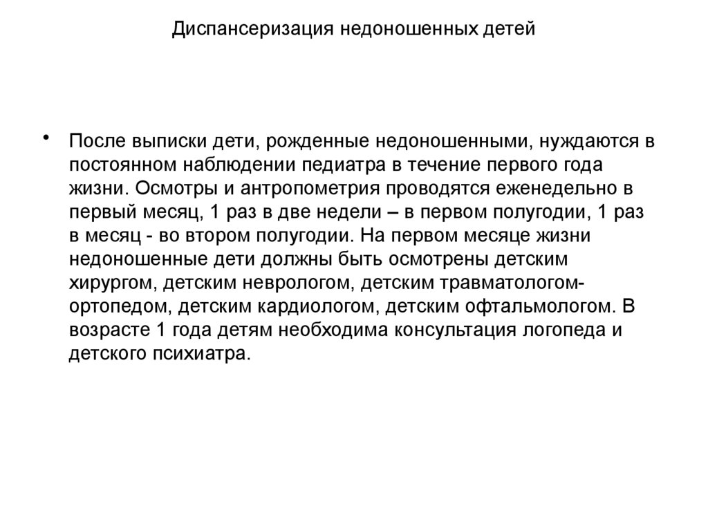 Диспансеризация недоношенных детей• После выписки дети, рожденные недоношенными, нуждаются в