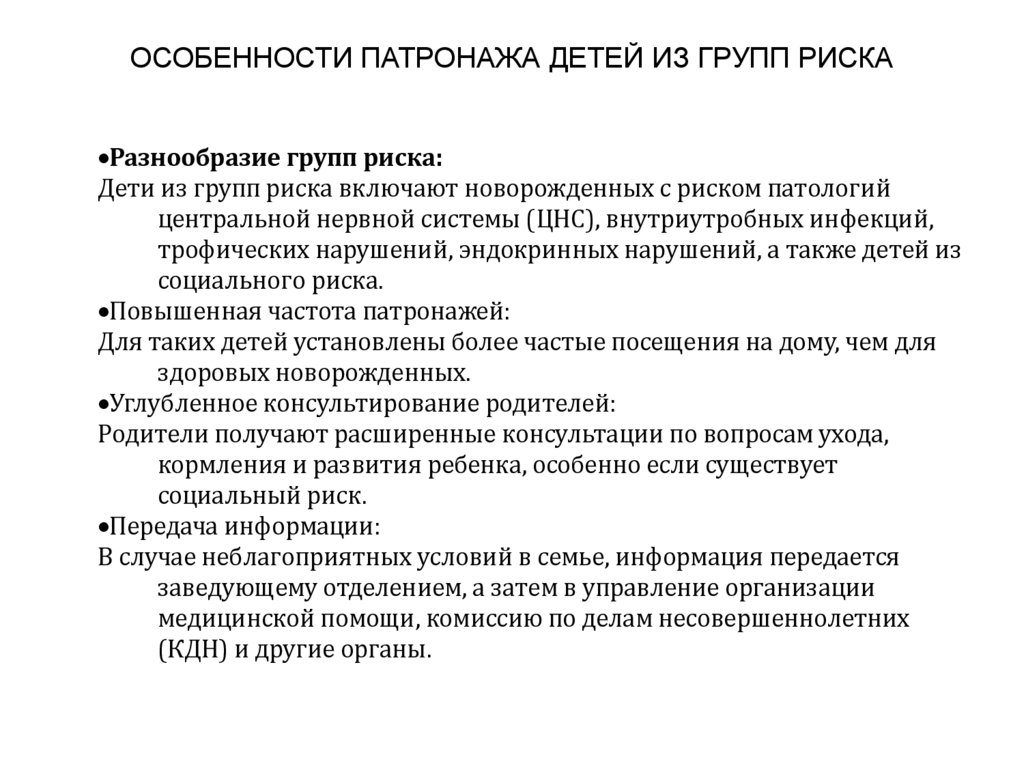 ОСОБЕННОСТИ ПАТРОНАЖА ДЕТЕЙ ИЗ ГРУПП РИСКАРазнообразие групп риска: