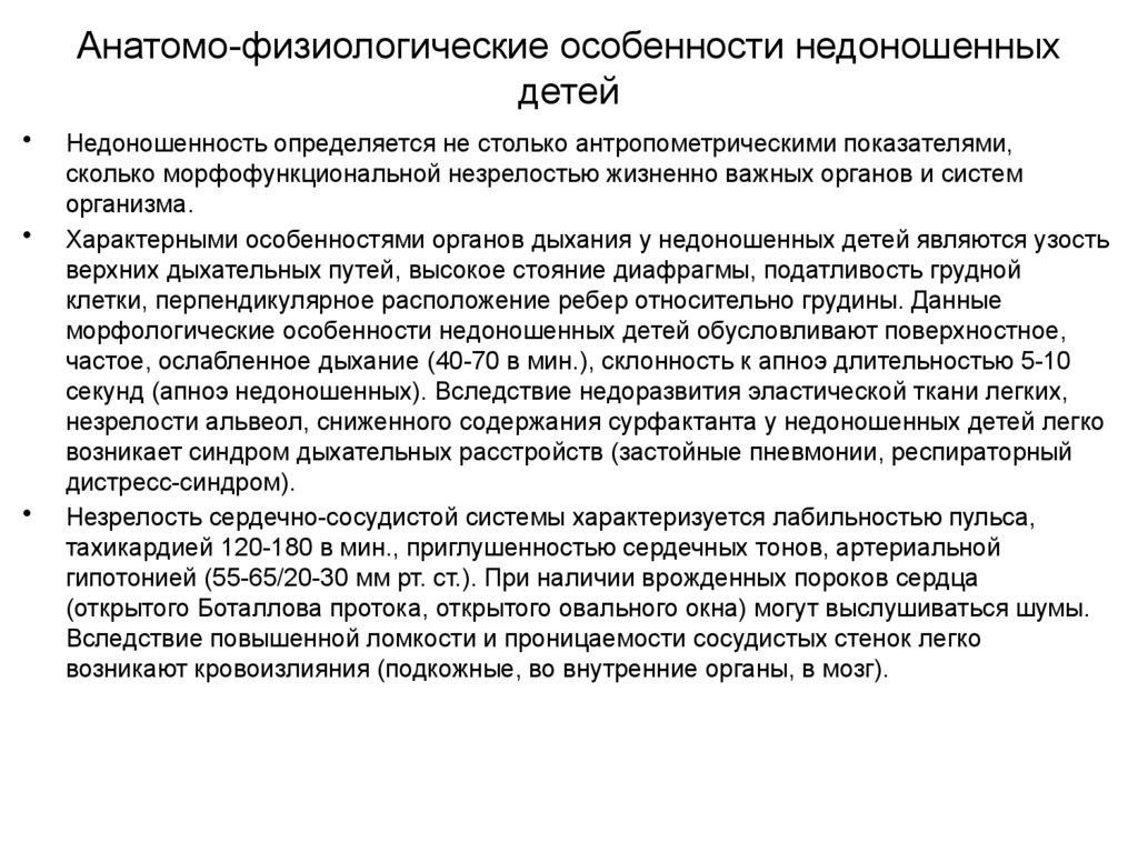 Анатомо-физиологические особенности недоношенныхдетей