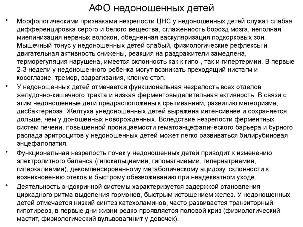 сколько морфофункциональной незрелостью жизненно важных органов и систем