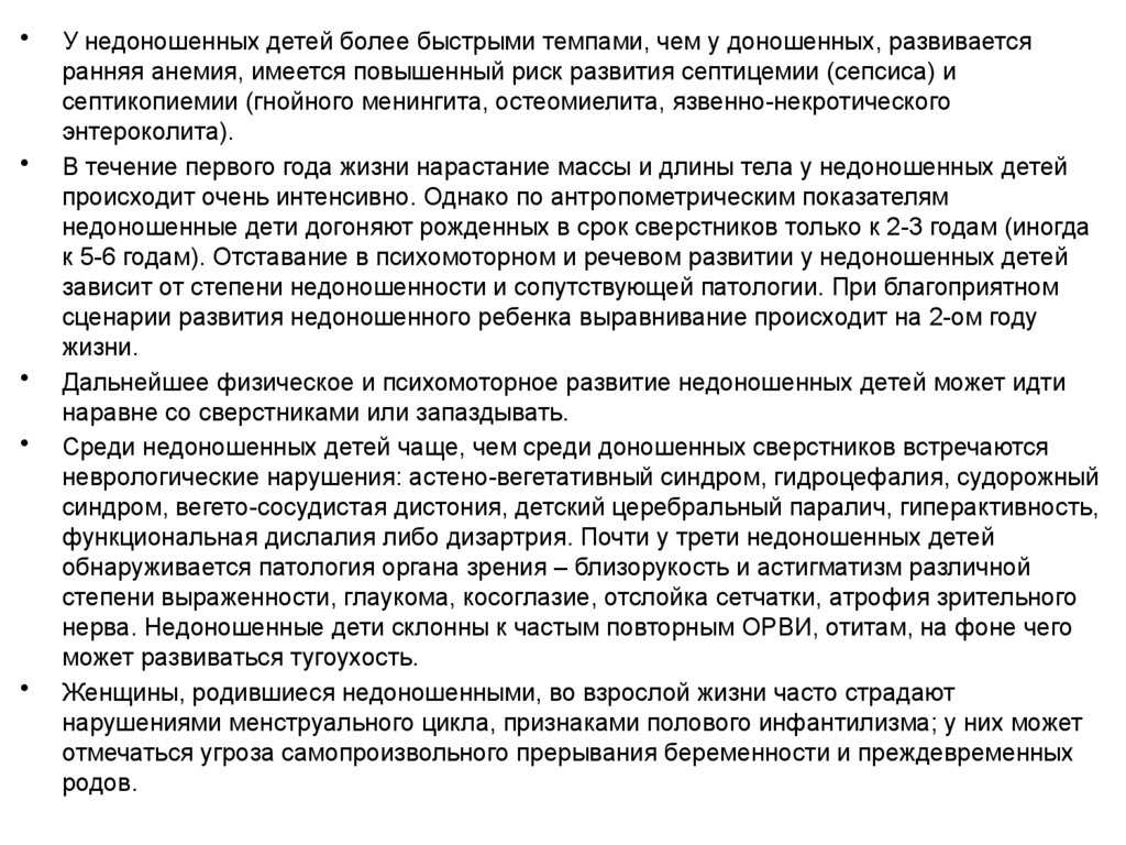 которых коррелирует со степенью недоношенности.