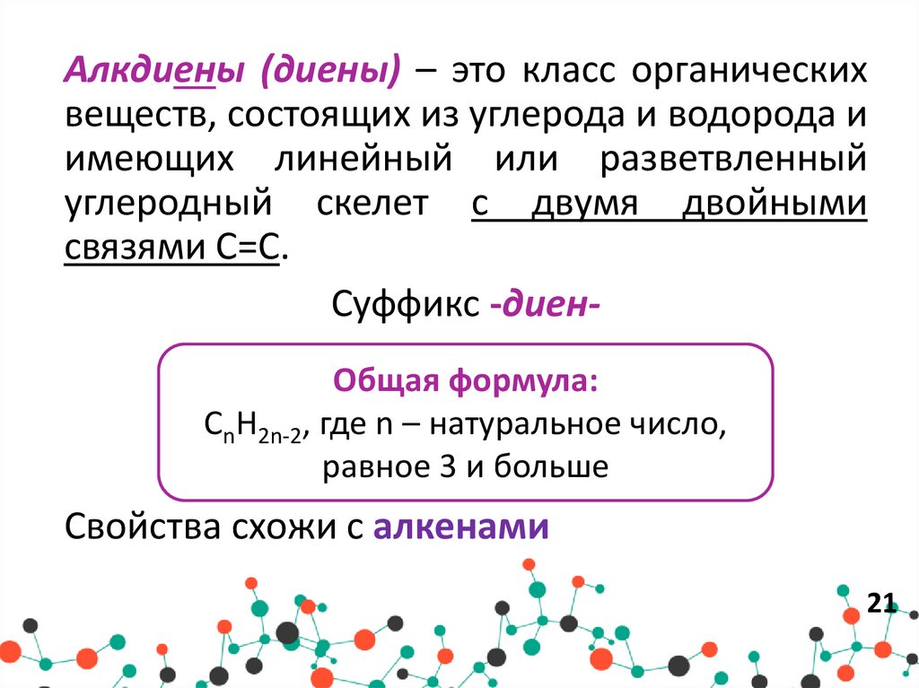 Алкдиены (диены) – это класс органическихвеществ, состоящих из углерода и водорода и