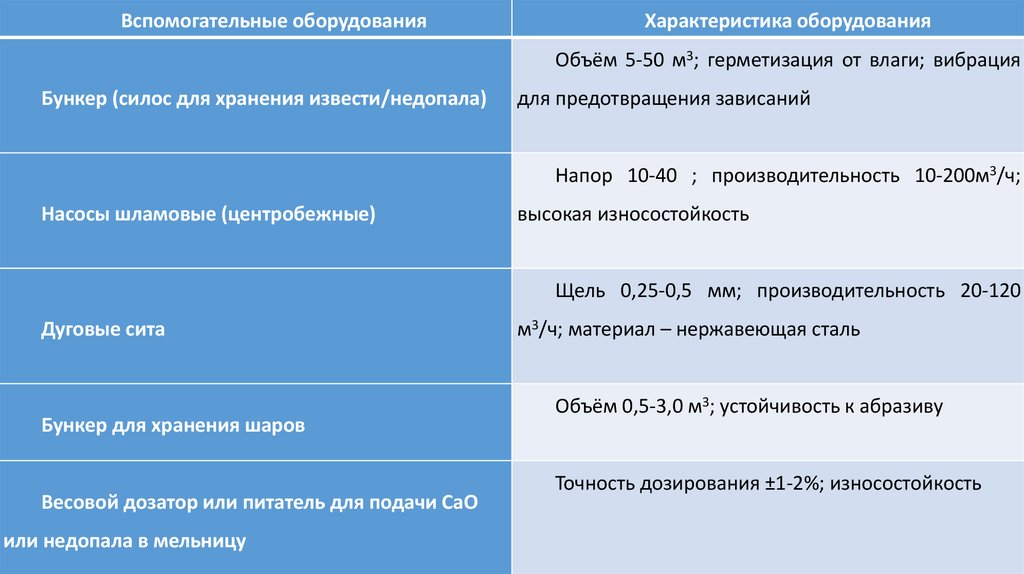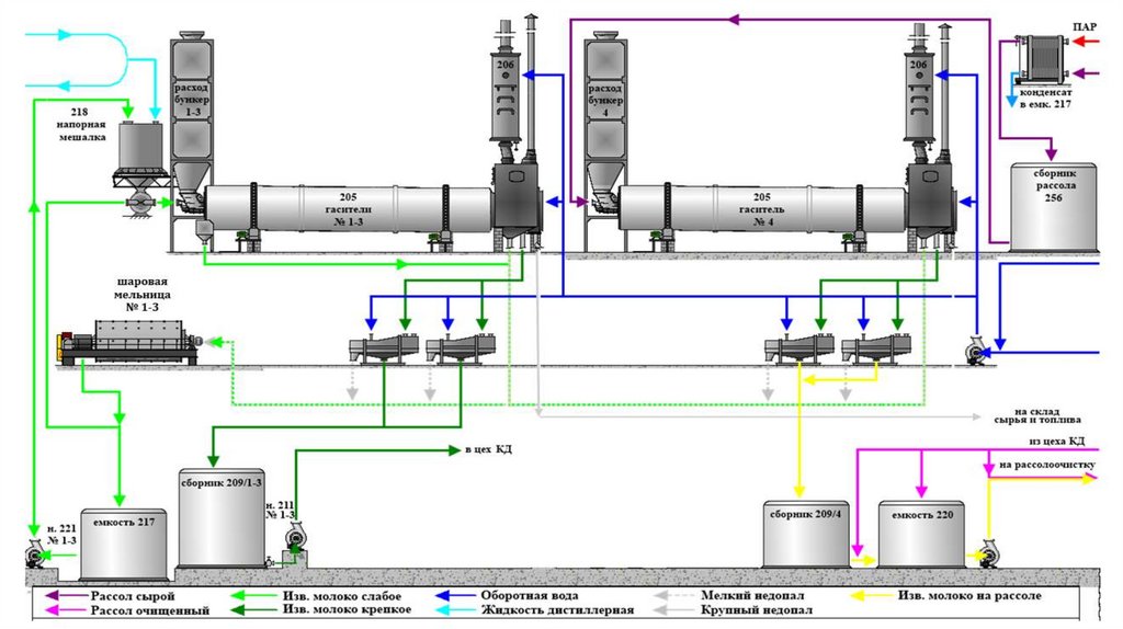 сборники-мешалки слабого известкового молока, ленточные конвейеры, насосы.